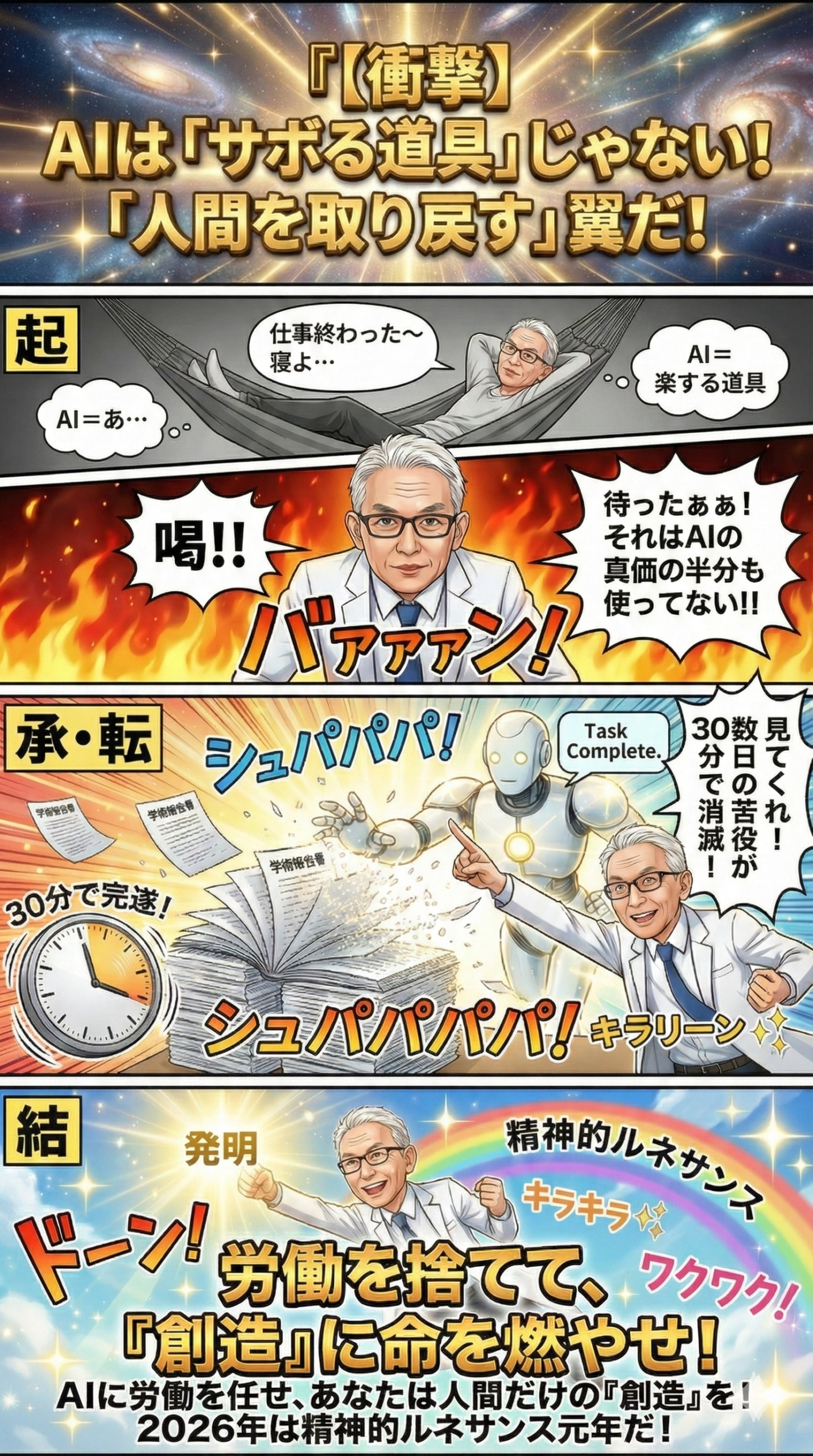 #精神的ルネサンス #労働からの自由 #生成AI #歯科医師の挑戦 #創造の時間 #2026年の誓い #AI活用 #働き方改革 #クリエイティブ #発明家 #思想家